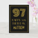 The front of this vintage look and 1920s/1930s style inspired birthday themed greeting card design features a large Art Deco look inspired number "97", the message "HAPPY 97th BIRTHDAY,", a personalized name, and a border pattern consisting of lines. The inside features a customizable birthday greeting message, or could perhaps be cleared and left blank if a message is to be written by hand instead. A custom birthday card like this might be a fun way to send birthday wishes to somebody who is celebrating their ninety seventh birthday. [~Z0000394]