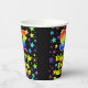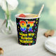 This colorful and exciting birthday paper cup design features a large number “97” having a rainbow spectrum gradient inspired pattern. It also features the message “Happy 97th Birthday,”, and a personalized name. The background features a multicolored pattern featuring many star shapes with different colors and sizes. Colorful, vibrant paper cups like this might be fun to use at a birthday celebration/party being held to celebrate somebody’s ninety seventh birthday. [~Z0000540]
