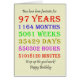 97th birthday card counting down the years, days, months, hours, and minutes. A card to give pause for thought! Leap years have been taken into account!