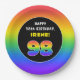 98th Birthday: Colourful Rainbow # 98, Custom Name Paper Plate