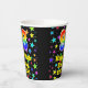 This exciting and cheerful birthday-themed paper cup design features a large number “98” with a rainbow spectrum gradient inspired pattern, along with the message “Happy 98th Birthday,”, and a customizable name. The background features an exciting and colourful star field inspired pattern. Colourful, vibrant paper cups like this might be fun to have at a birthday party being held to honour somebody’s 98th birthday. [~Z0000540]