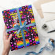 This happy and cheerful birthday themed wrapping paper design features a large number “98” having a rainbow spectrum gradient inspired pattern. It also features the message “Happy 98th Birthday,”, and a custom name. The background features a pattern of heart shapes with colours like purple, red, and pink. Personalized wrapping paper like this might be a fun way of wrapping a birthday present or gift being given to somebody who is celebrating their 98th birthday. [~Z0000549]