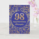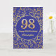 98th Birthday Navy Blue and Gold Floral Pattern Card