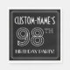 This luxurious Roaring Twenties era inspired art deco look birthday themed paper napkin design has a custom name, along with the message “98TH BIRTHDAY PARTY!”. The number “98TH” has a fancy geometric lined appearance. Birthday themed paper napkins like these might be used at a party celebrating somebody’s ninety-eighth birthday, or some other 98th event. [~Z0000659]