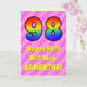 98th Birthday: Pink Stripes & Hearts, Rainbow # 98 Card