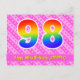 98th Birthday: Pink Stripes & Hearts, Rainbow 98 Postcard
