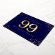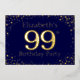 99e anniversaire invitation de fête. Personnalisez avec le nom de la personne d'honneur. Le numéro 99 en gros style scintillant. Encadré de points dorés en chute. Placé sur un bleu foncé très saturé. Entrez les détails de la fête au verso de l'invitation en utilisant les modèles, également envoyé sur bleu foncé encadré de diamants.