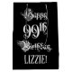 This fancy and lavish birthday-themed gift bag design features the message “Happy 99th Birthday,” in elegant script style text, on a black coloured background. It also has a personalized recipient name. A formal gift bag like this might be used when giving a gift or present in honour of somebody’s ninety ninth birthday. [~Z0000557]