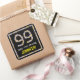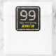 This fun, nature-inspired birthday square sticker design has the message “Happy 99th Birthday,” along with a personalized recipient name. The large number “99” plus the border both consist of flower icons. Stickers like these might be used when celebrating somebody’s ninety-ninth birthday. [~Z0000652]