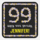 99th Birthday: Floral Flowers Number, Custom Name Square Sticker