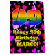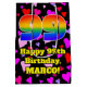 This cheerful and colourful birthday giftbag design features a large number “99” having a rainbow spectrum gradient inspired pattern. It also features the message “Happy 99th Birthday,”, and an editable name. The background features a pattern of purple, red, and pink heart shapes. A gift bag like this might be used when giving a gift or present in honour of somebody’s 99th birthday. [~Z0000551]