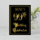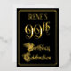 The front of this ornate and luxurious foil ninety-ninth birthday party invitation design features the message “99th Birthday Celebration” in fancy script-style text. It also has a custom name. The background of the front is coloured black by default (although it can be customized to a different colour). The back features personalized details about the event, such as the date, time, location, and any other relevant information. Elegant, opulent, customized invitations like these might be used to invite guests to a birthday celebration being held to honour somebody’s 99th birthday. [~Z0000589]