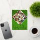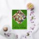 DESIGN AVANT : Un collage de 9 photos dans une grille en forme de losange pour mettre en évidence de nombreuses photos de l'année passée. La grille photo est incluse avec les noms de famille faisant une bordure autour du collage photo. Un look moderne pour un carte photo de vacances aux accents modernes et "happy holiday" dans une écriture manuscrite branchée. L'arrière - plan est vert.