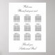 9 Table Elegant Minimalist Seating Chart, please personalize the names of the couple and the names of the guests along with any of the other text that you may wish to personalize. An elegant seating chart featuring stylish black text in a clean minimalistic layout on a white background.