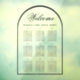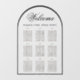 A simple transparent seating chart inside a modern arch frame. The text and the frame are black. The Welcome is written in an elegant script.