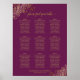 Ce beau tableau de sièges mariage de 9 tables comprend des assignations de tables pour 90 personnes, avec 10 personnes à chaque table. Le design est simple mais élégant avec du texte en or sur un arrière - plan mauve magenta ou cassis et dispose de superpositions en dentelle or faux feuille dans les coins et un titre de calligraphie script sophistiqué "s'il vous plaît trouver votre table." Sophistiqué et chic.