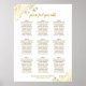 Ce beau tableau de sièges mariage de 9 tables comprend des assignations de tables pour 90 personnes, avec 10 personnes à chaque table. Le design est simple mais élégant avec du texte en or sur un arrière - plan blanc et dispose de superpositions en dentelle d'or imitation feuille dans les coins et un titre de calligraphie script sophistiqué "s'il vous plaît trouver votre table." Sophistiqué et chic.