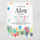 9th Birthday Balloons Party Invitation