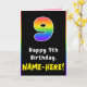 9th Birthday: Colourful Rainbow # 9, Custom Name Card