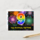9th Birthday – Fun Fireworks Pattern + Rainbow 9 Postcard