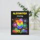 The front of this exciting and lively birthday party invitation postcard design has a personalized name, a vibrant bursting celebratory fireworks inspired pattern, and the message "9 YEARS OLD!" having a colourful rainbow spectrum inspired gradient pattern. The back features a personalized message with information about the party, such as when and where it is being held. Invitation postcards like this might be sent to potential guests of a party being held to celebrate the birthday of somebody who is turning 9 years old. [~Z0000452]