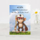 Make your grandson’s 9th birthday unforgettable with this personalized baseball card! A playful monkey, bat in hand and glove ready, stands against a bright blue sky, bringing sporty fun to his special day. Add his name to the front for a custom touch he’ll love. This lively and cheerful design is perfect for any nine-year-old baseball fan!