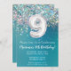 9th Birthday Invitation Teal Silver Glitter