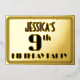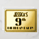 The front of this stylish and Roaring Twenties era inspired ninth birthday party/celebration foil invitation card design features a customizable name, an art deco look inspired number “9th”, the message “BIRTHDAY PARTY”, and a multi-line border. The back features personalized details about the event, such as the place/venue, date, time, and any other important information. Stylish, elegant, customized invitations like these might be used to invite guests to a birthday party being held to celebrate somebody’s 9th birthday. [~Z0000606]