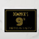 The front of this 1920s-1930s style inspired and vintage-appearance ninth birthday celebration foil invitation features an editable name, a large art deco look inspired number “9TH”, the message “BIRTHDAY PARTY!”, and a border pattern consisting of lines. There is a black-coloured background on the front by default, but it can be customized to a different colour if desired. The back features personalized details about the event, such as the date, time, location, and any other information that may be relevant. Luxurious, elegant, editable invitations like these might be used to invite guests to a birthday celebration being held to honour somebody’s 9th birthday. [~Z0000590]