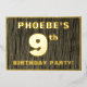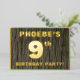 The front of this bold ninth birthday party/celebration foil invitation card features a personalized name, a large number “9th”, the message “BIRTHDAY PARTY!”, and a border, all in foil. The background of the front features a rustic, yet elegant, faux wood grain appearance inspired pattern. The back features personalized details about the event, such as the date, time, place/venue, and any other information that may be relevant. Customized invitations like these might be used to invite attendees/guests to a birthday party being held to honor somebody’s 9th birthday. [~Z0000598]