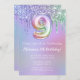 9th birthday party invitation purple pink glitter drips 9th birthday party invitation for a 9 year old girl with modern script writing and fun foil balloons.