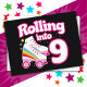 This skate party design is perfect for a roller skating party or birthday theme for a 9 year old girl. If the birthday girl loves to roller skate she will LOVE this skate party design! Features retro style 'Rolling into 9' birthday quote with cool roller skate graphic with rainbows & stars that's fun & unique. Fun roller skate party design for a girl's 9th birthday!