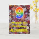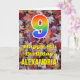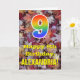The front of this colourful, autumn-themed, and nature-inspired birthday greeting card design features a large number "9" with a rainbow spectrum gradient inspired pattern, along with the message "Happy 9th Birthday,", and an editable name. The background of the front of the card features a rustic fallen autumn leaves pattern. The inside features an editable birthday greeting message, or could perhaps be cleared and left blank if a message is to be written by hand instead. A customizable birthday card like this might be a fun way to send birthday wishes to somebody who is celebrating their ninth birthday. [~Z0000384]