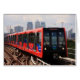Londres, R-U. Train léger de rail de quartiers des docks avec le téléphérique au-dessus de l'horizon de dôme et de Londres de Greenwich autour du quai jaune canari à l'arrière-plan. -- Image par CitiZine. --