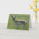 Pronghorn Antelope Big Buck "captioned" Card. This pronghorn was feeding in the lush spring greenery when I took this photo. He is shedding his heavy winter coat for a much lighter summer coat to keep him cooler, summer temperatures on the Alberta Prairies can top 40 degrees Celsius.