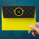 A7 Black and Yellow Damask Flap Monogram Envelopes