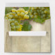A7 5" x 7" size invitation envelopes. Two sided envelopes with the interior design to match the wedding invitation, bridal shower, rehearsal dinner or other party invitations of this theme. Your return address can be preprinted on these using the template fields. Envelopes require a longer manufacturing time as they are printed and hand assembled. Please take note of the time and allow enough time to receive them before mailing your invitations. Hand painted rustic, tuscan vineyard inspired ancient stone walls inspired the background with it's rich texture and grunge. Hand painted original artwork by Audrey Jeanne is blended with vintage etched printer's decorative ornament flourishes and her fine art image of Chardonnay grapes hanging on the vine in a vineyard.