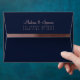 A navy blue 5x7 envelope with a faux rose gold foil Lining Inside. This elegant and sparkly metallic pink rose gold classic blue all purpose envelope is a classy way to send invitations. You can customize and personalize your name and address on the back flap.