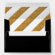 NOTE: This is a flat printed image, there is no actual glitter, gold metallic ink or layers. COLOR PALETTE: Black, white and Gold metallic look. DESIGN COLLECTION: Matching preprinted A7 Wedding invitation envelopes. Created using hand lettered script scroll calligraphy by Audrey Jeanne Roberts. The hand calligraphied text reads "reception" and has scrolling swirl flourishes to add a touch of modern elegance. On the reverse side is a wide diagonal stripe also in golden glittering sparkle. Your personalized invitation wording can easily be customized with the simple template fields provided. Available in silver and gold glitters with any colour background. Just contact us and we'll match your wedding colour.