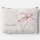C'est une pochette de maquillage personnalisée élégante et stylée présentant un fond rose doux orné d'un grand nœud en ruban rose délicat. Le design dégage un charme féminin et sophistiqué, parfait pour transporter vos produits cosmétiques et vos objets de beauté essentiels. La pochette peut être personnalisée avec un nom, ce qui en fait un cadeau unique et attentionné. Image de fond par Freepik