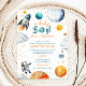 Get ready for liftoff — a little astronaut is on his way! This watercolor design features rockets, planets, and soft clouds for a dreamy space adventure. Perfect for celebrating your baby boy with cosmic charm and joy 🌟