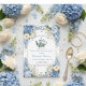 Celebrate the upcoming arrival of your little one with this elegant “A Baby is Brewing” invitation. Featuring a charming blue floral teapot surrounded by watercolor hydrangeas and gold accents, it’s perfect for a baby shower tea party with a timeless and classy touch.