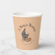 Personalized "A Baby is Brewing" Halloween Baby Shower paper cups, featuring hand-drawn baby carriage, crow and pumpkins against an elegant light orange background. Printed on Front and Back of the cup. Simply click on "Personalize this template" to insert your own name.