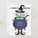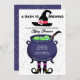 A Baby is Brewing Halloween Baby Shower Invitation with witches hat, cauldron, witchy feet and spiders web. Fun fall baby shower invitations.