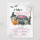 Celebrate the upcoming arrival of a new little one with a touch of spooky charm with our Pink Brewing Baby Shower Halloween Invitation! This invitation features enchanting elements such as a witch's broom, a pumpkin, a spell book adorned with a magical hat, a mischievous spider, and eerie skull bones. Make your baby shower an unforgettable event with these creatively designed invitation. BBS419