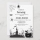 A Baby is breawing! You can celebrate the parents-to-be in style with this Halloween-themed baby shower invitation! A scary tree is in the bottom left corner of this black and white artwork, while a bubbling cauldron is in the bottom right corner. "Personalize this template" by editing the template fields' text. Scroll down to "Click to customize further" to get more advanced editing tools. Once you're in Zazzle's design tool, you may change the typefaces, positioning, colour, sizing, and more!