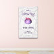 Adorable girl baby shower welcome banner with an illustration of a witch cauldron bubbling in pink and purple colours. Illustrated and designed by Patricia Alvarez.