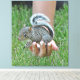 An interesting and beautiful piece depicting a baby squirrel in a woman’s hand