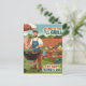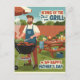 A bold, graphic-style Father's Day postcard showcasing a backyard BBQ.