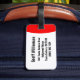 Aide à trouver et à garder d'autres hors de votre sac à bagages avec cette étiquette de bagage rouge et noir en gras STOP! désactive le symbole d'avertissement. Design Unisex idéal pour toute la famille. Lit la propriété STOP de, puis ajoutez votre nom sur l'avant et le nom complet et l'adresse à l'envers. Parfait pour les vacances à l'aéroport et les voyages en autocar. Customisez le verso de cette balise avec vos nom et adresse. Conçu exclusivement par Sarah Trett.